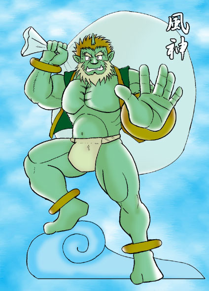 コメント:めっきーさんの雷神の絵と交換した風神の絵。
