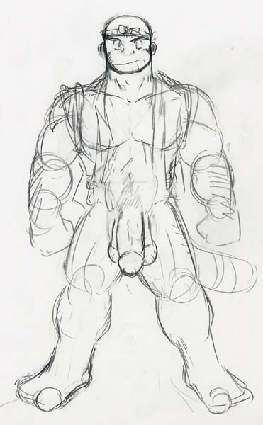 コメント:狸オヤジ。股間の練習用に描いたモノ。