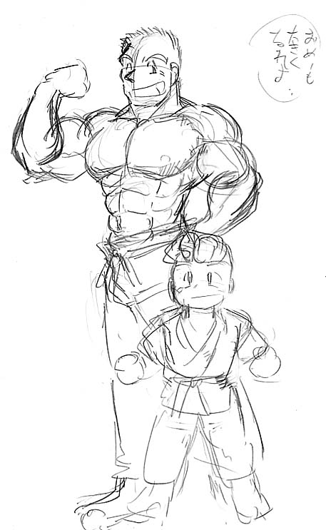 コメント:虎丸君の「肉専」に描いたイラストのラフ。完成品と違うところたんまりです。
